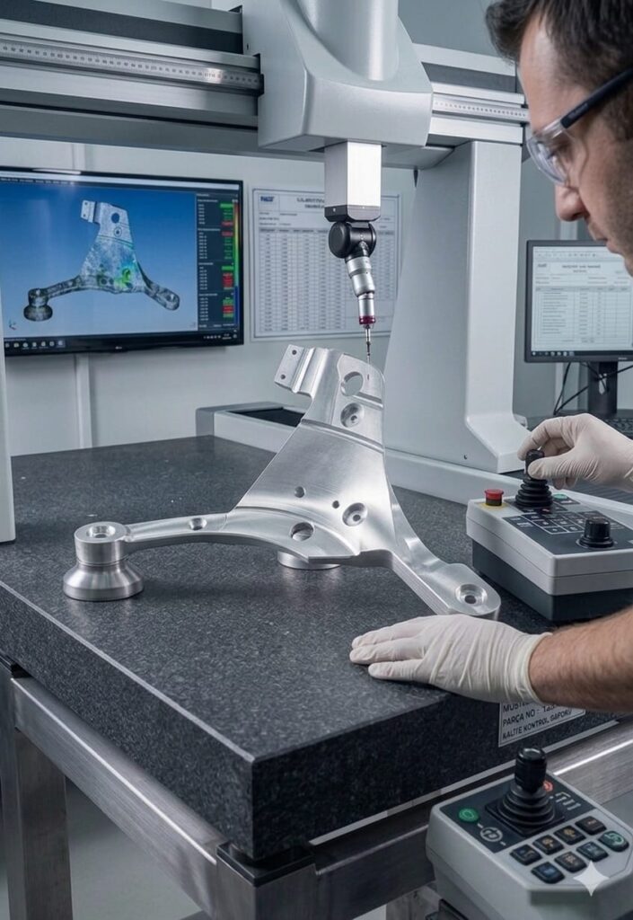 Üretim tamamlandıktan sonra parçanın ölçüsel doğruluğu kontrol edilir.